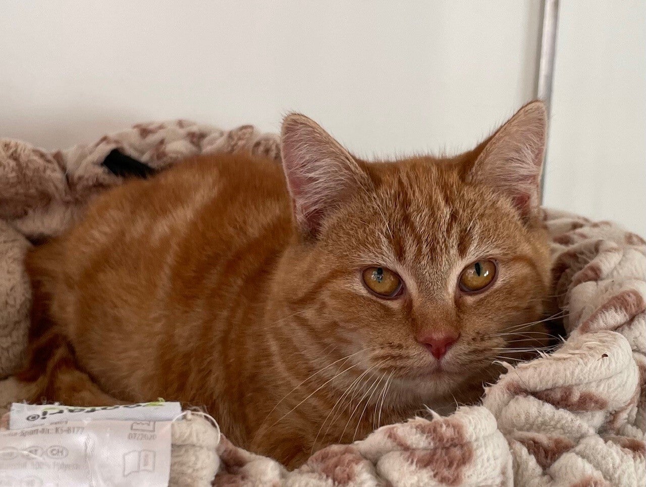 Dit katertje zit samen met kitten 55, deze 2 zijn de bangste van de groep. Hij is inmiddels volledig geënt.