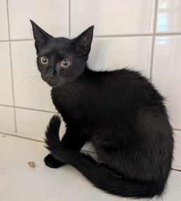 Kitten 35 is een kitten van een gezellige groep. Ze zijn allemaal zwart, de 1 is dapperder dan de ander. Inmiddels zijn ze zover dat ze kunnen verhuizen naar eigen huisjes.
